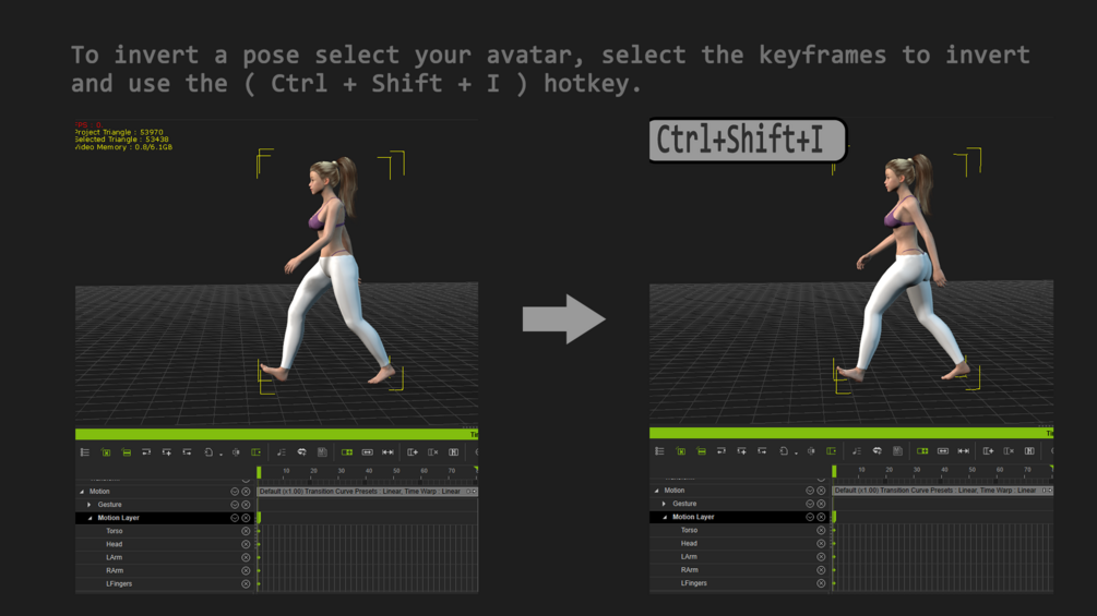 Invert Pose is a 3rd party plugin for Reallusion's IClone 7 that simplifies the process of inverting poses in IClone.